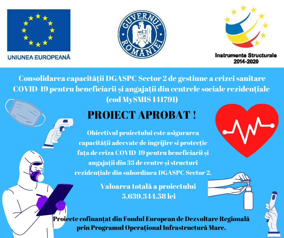 Consolidarea capacității DGASPC Sector 2 de gestiune a crizei sanitare COVID-19 pentru beneficiarii și angajații din centrele sociale rezidențiale (cod MySMIS 141791) – PROIECT APROBAT ! Ultima actualizare in 25 martie 2021