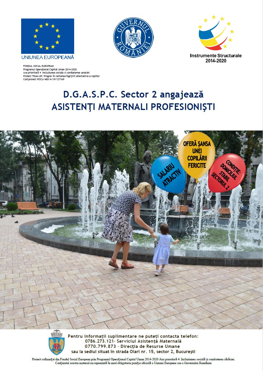 DGASPC Sector 2 continuă campania de recrutare, formare, atestare și angajare de persoane care doresc să profeseze ca asistenți maternali profesioniști.