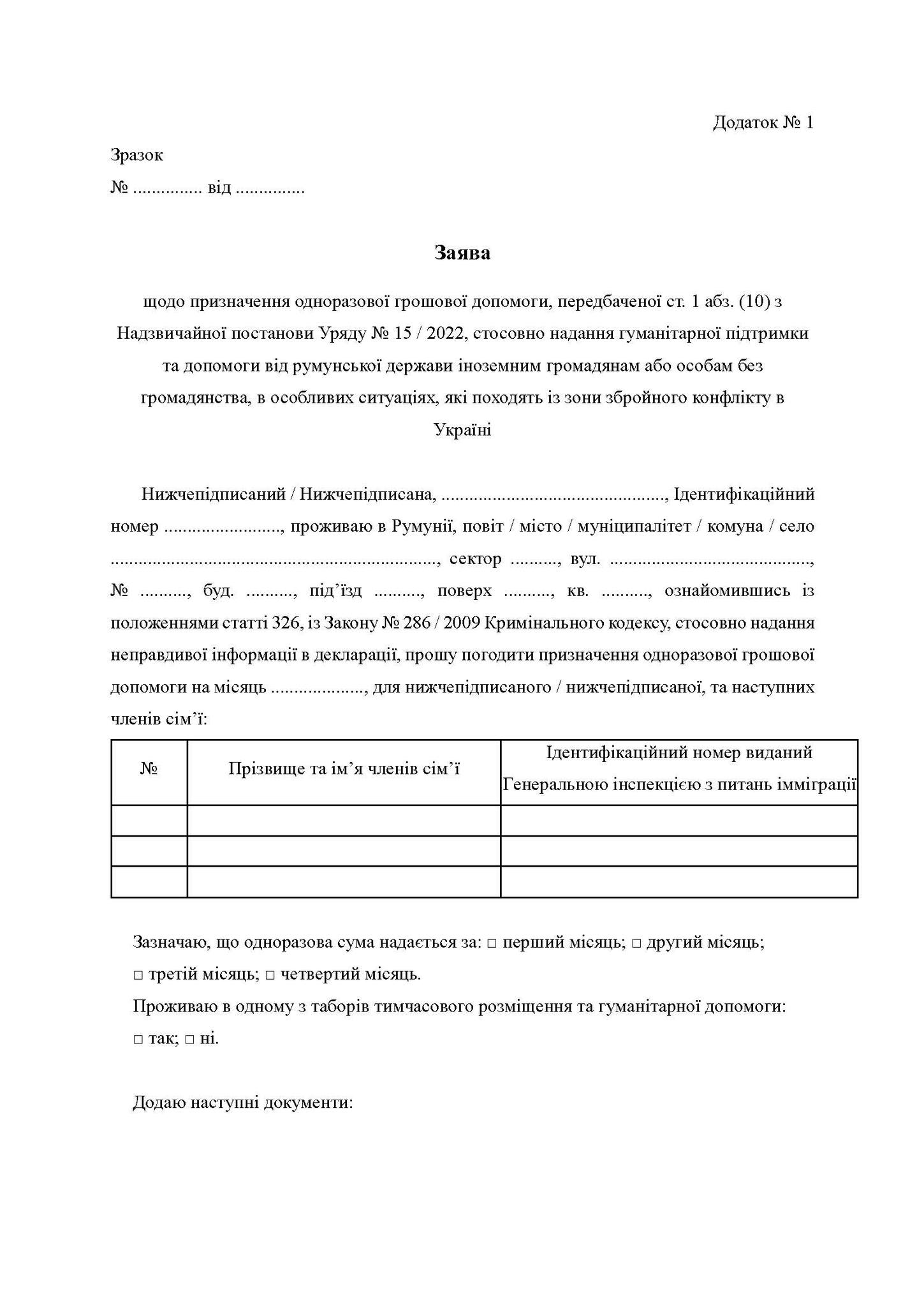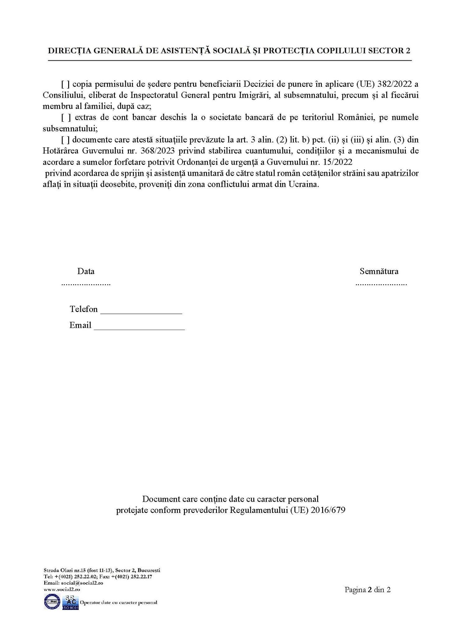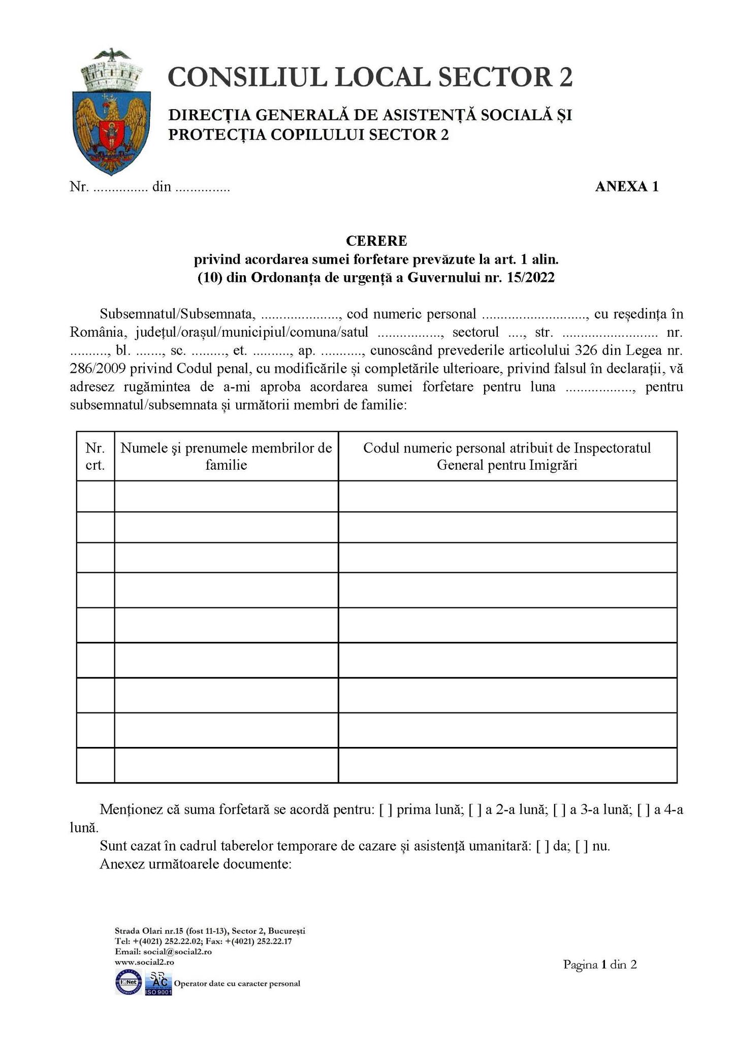 Cererea Anexa nr. 1 (dacă locuiești în centru de cazare, alege ‘Sunt cazat în cadrul taberelor temporare de cazare şi asistență umanitară: □ da’).