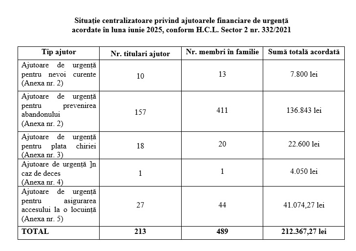 | Ajutoare de urgență pentru nevoi curente (Anexa nr. 2) | 10 | 13 | 7.800 lei |